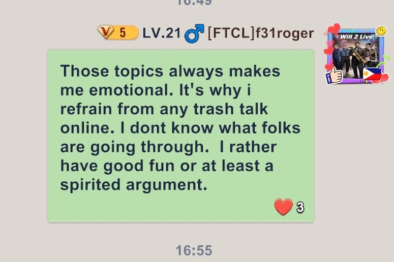 I try to be good online and I refrain from trash talk because I don’t know what someone is going through in there life. So I’d rather be a good person than a horrible person.
