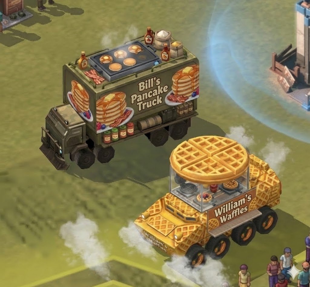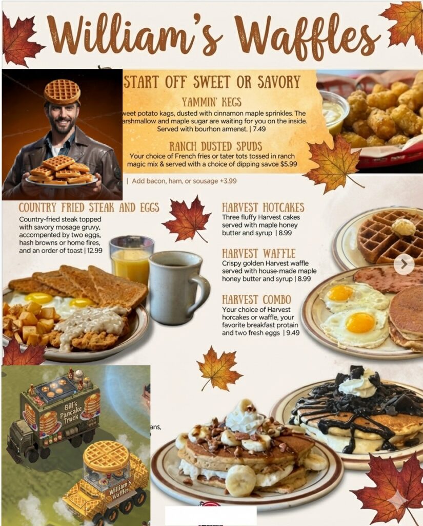 I also finally decided to put William make waffles, make both pancake and waffle trucks and a menu.