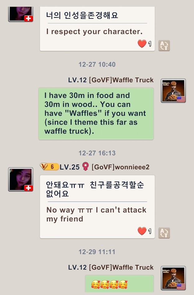 I didn’t have enough diamonds for shields and I didn’t want my resources to be looted. I offered my resources to the R4 and she was super sweet.