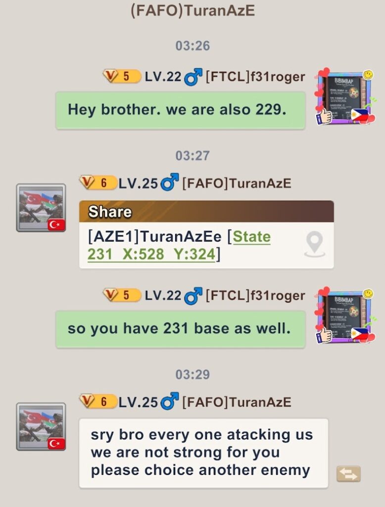 One of our rivals in 231 has an FAFO (229) account and he was using that account to protect 231.