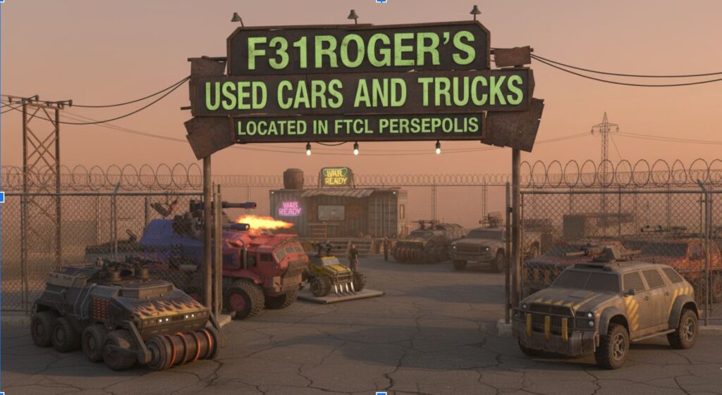 F31Roger’s Used Cars and Trucks: Your Apocalypse-Ready Ride Headquarters in FTCL Persepolis!