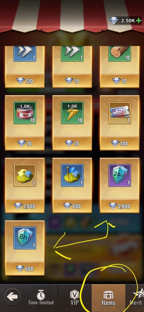 When the tabs show on the bottom, click item. Purchase with Diamonds compared to krit.