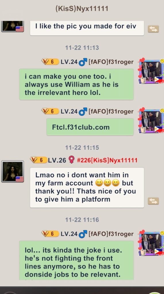 Nyx replied, “I don’t want him on my farm account LOL. It is nice of you to give William a platform”.