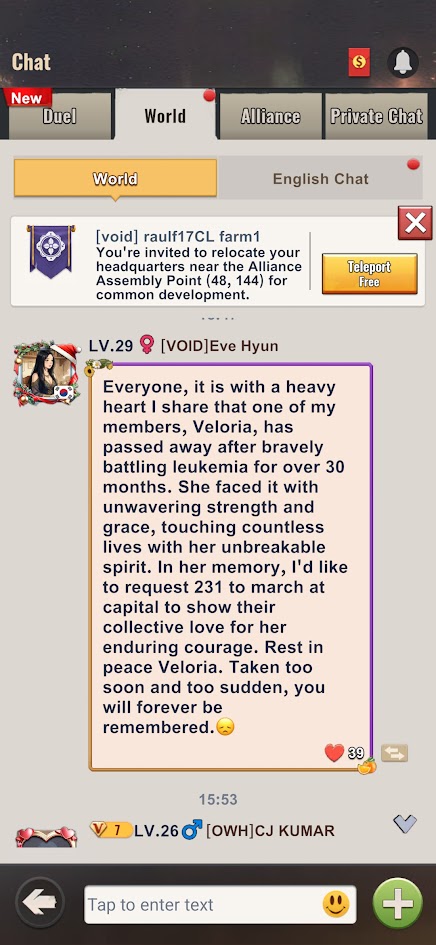 VOID Eve announced that Veloria had passed away after battling Leukemia. The impact was felt in 229 as one of Shaw’s main players, Jon, was very close to her.