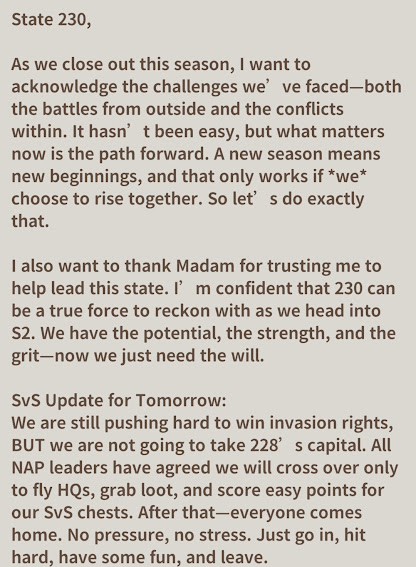 In 230, BFRs announced they won’t defend or invade the capital. Instead, everyone go loot the other server.