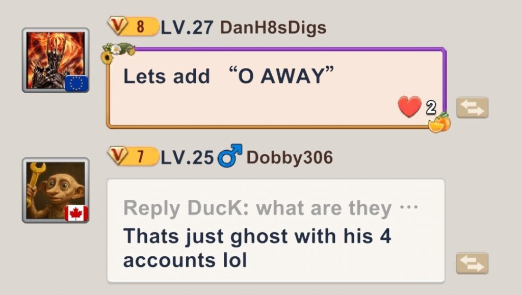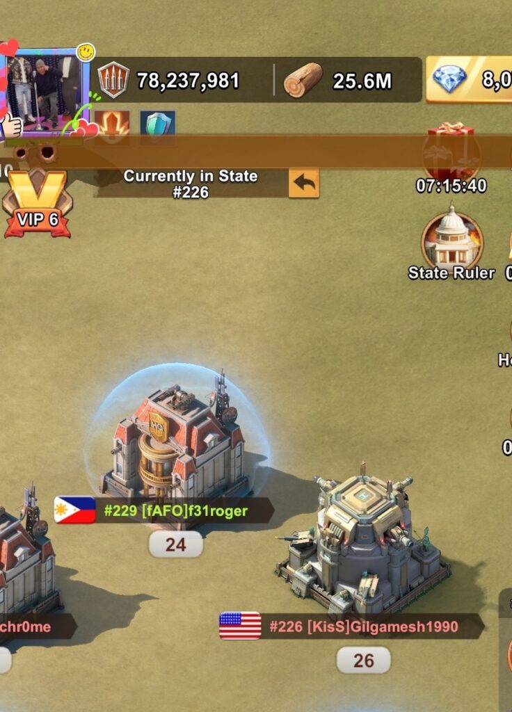 After SvS, we were free to go to our VS/AD rival’s server, which was 226. I went to visit my friends in KisS. I was again in and out, but I left my base there in hopes FAFO wouldn’t loot my family. My 2 farms needed to be drained and I wanted to also take pictures with my KisS friends.