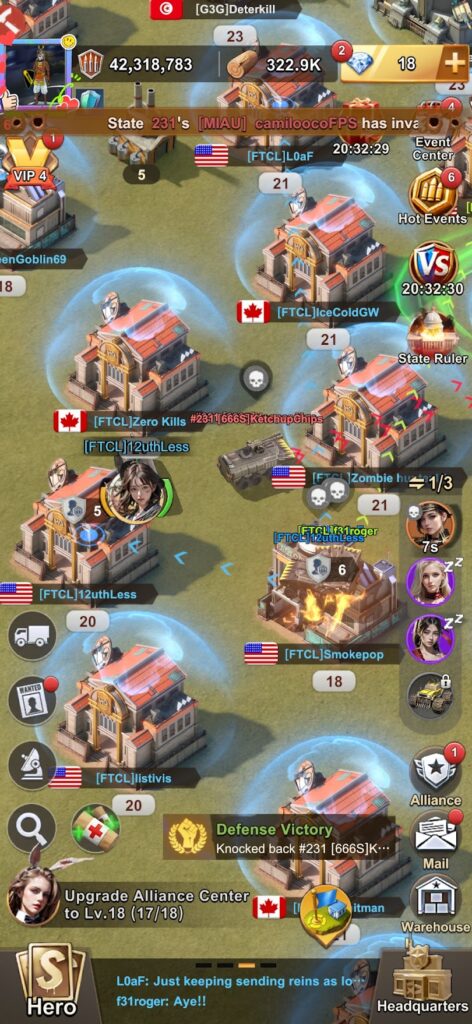 We were blamed for low turn out, but when Enemy Buster happened, 231 started in the mud and occupied it all night (opposite timezones than US).