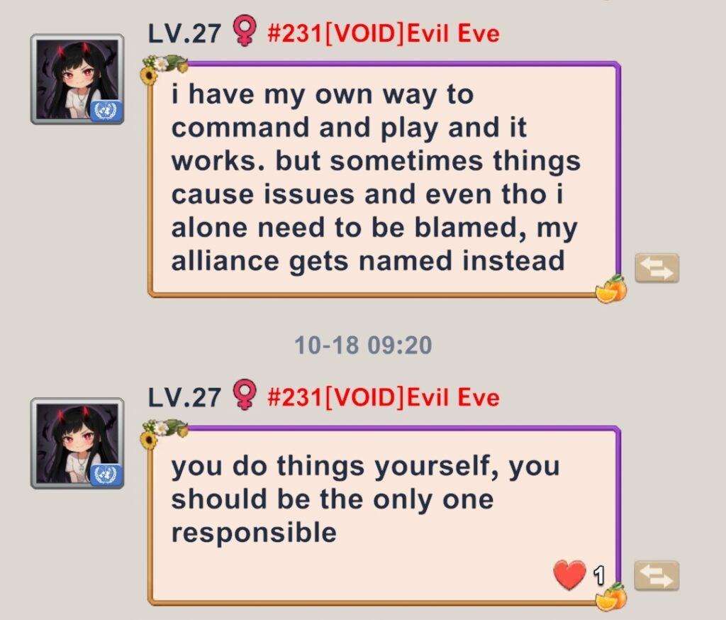 This is that responsibility to be a rational thinking person. Own up to mistakes and do what is best for the respective alliance and server. Ask yourself, Would you give up your power/position if you were found to be in severe violation.